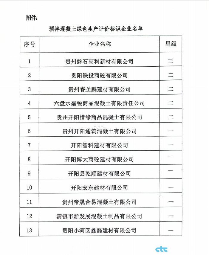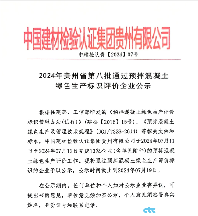 2024年貴州省第八批通過預(yù)拌混凝土綠色生產(chǎn)標識評價企業(yè)公示