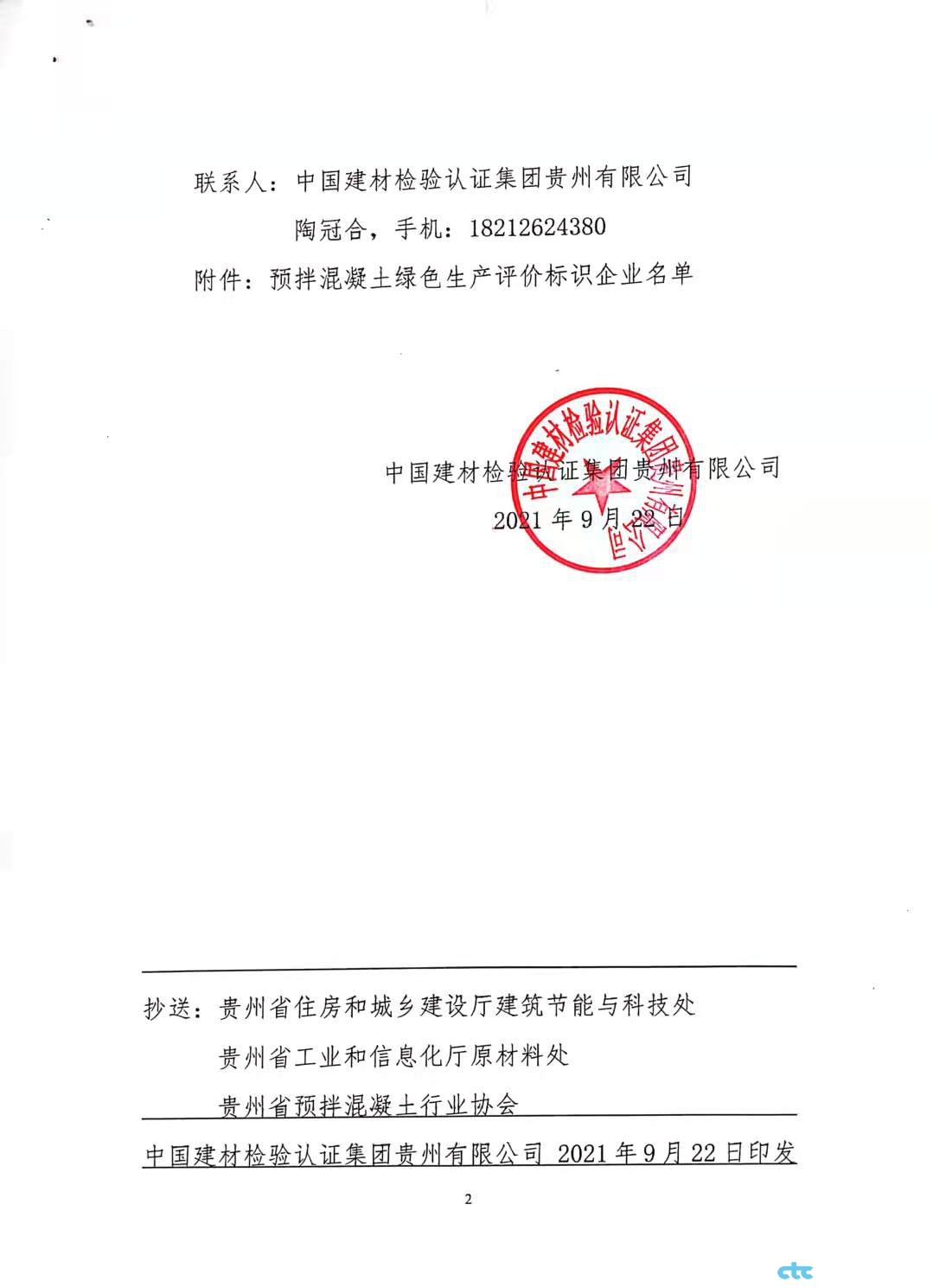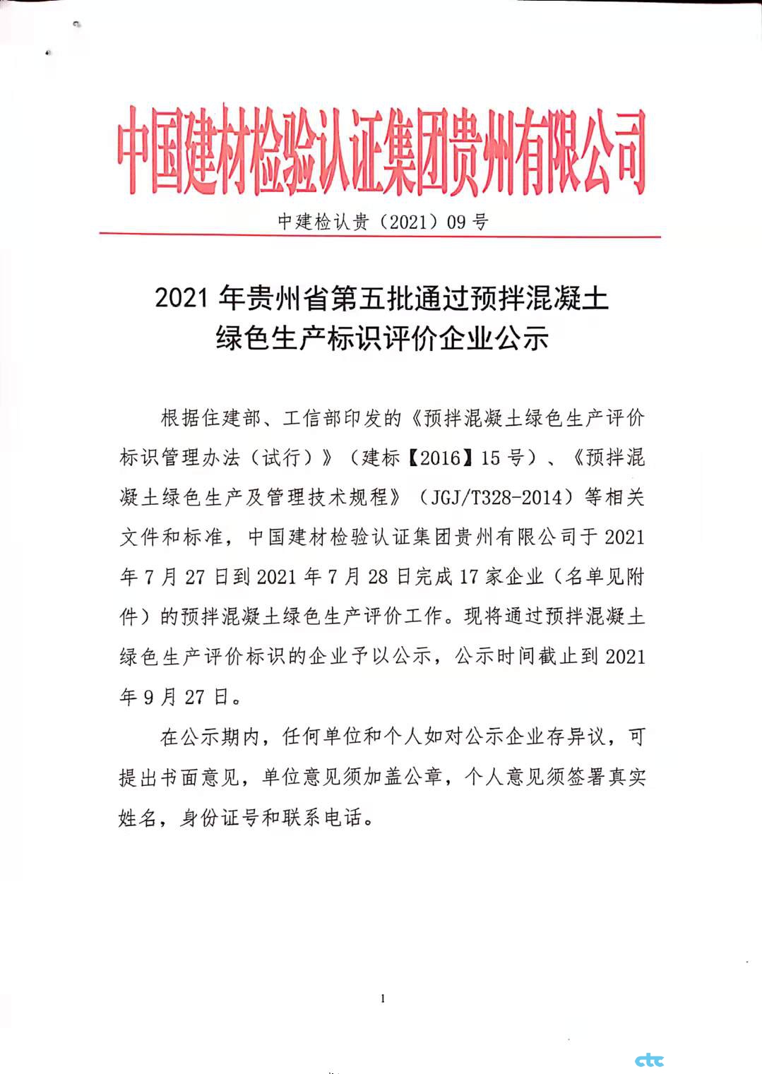 2021年貴州省第五批通過預(yù)拌混凝土綠色生產(chǎn)標(biāo)識(shí)評(píng)價(jià)企業(yè)公示