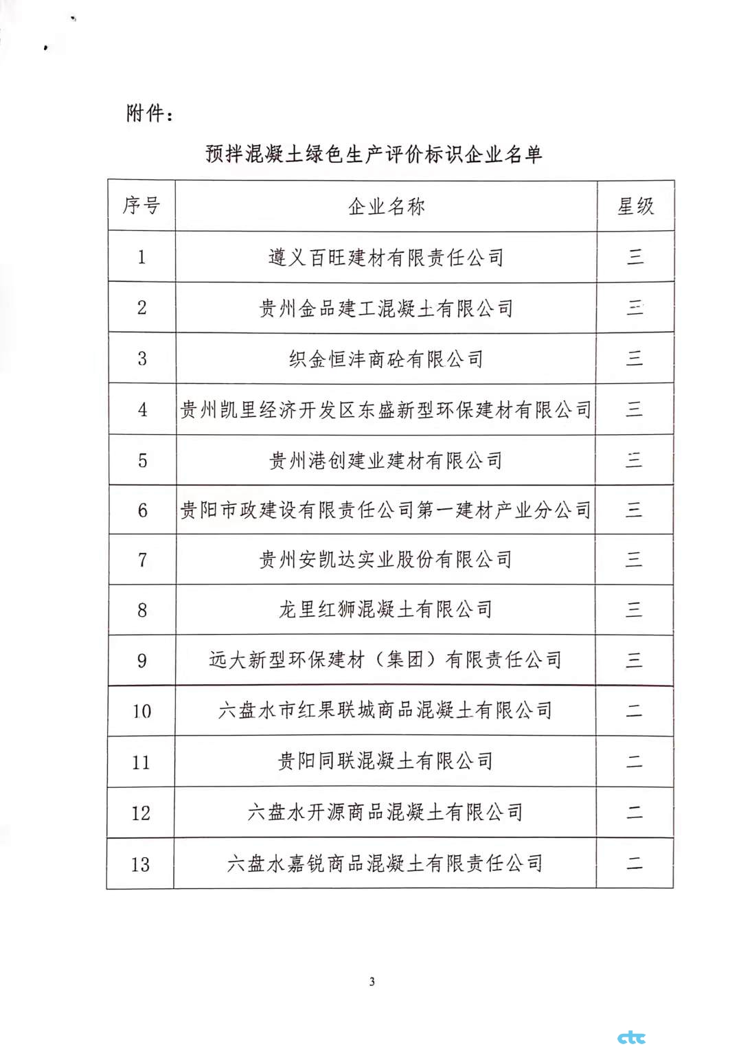 2022年貴州省第六批通過預(yù)拌混凝土綠色生產(chǎn)標(biāo)識(shí)評(píng)價(jià)企業(yè)公示