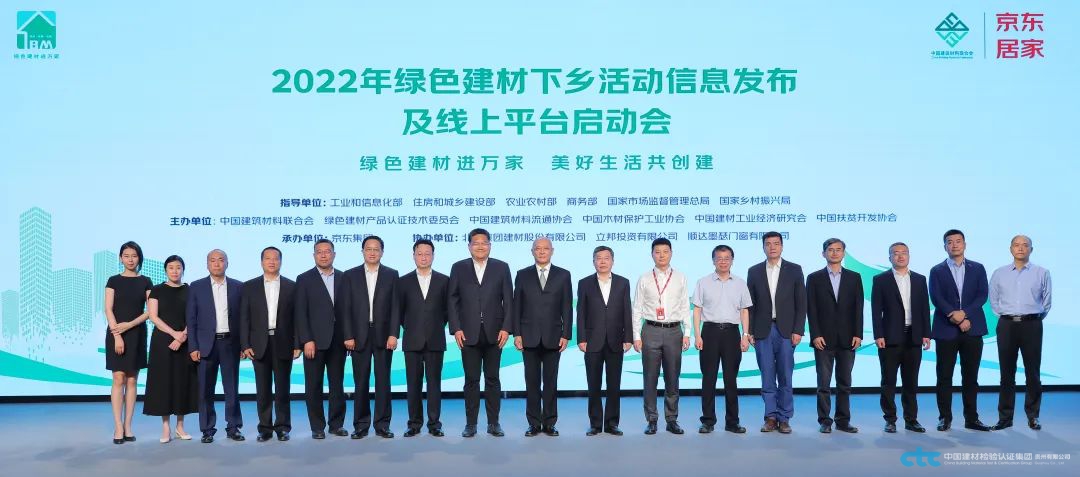 6月6日,由工業(yè)和信息化部、住房和城鄉(xiāng)建設部、農(nóng)業(yè)農(nóng)村部、商務部、國家市場監(jiān)督管理總局、國家鄉(xiāng)村振興局六部門指導,中國建筑材料聯(lián)合會、綠色建材產(chǎn)品認證技術委員會、中國建筑材料流通協(xié)會、中國木材保護工業(yè)協(xié)會、中國建材工業(yè)經(jīng)濟研究會、中國扶貧開發(fā)協(xié)會聯(lián)合主辦的“2022年綠色建材下鄉(xiāng)活動信息發(fā)布及線上平臺啟動會”舉行。工業(yè)和信息化部原材料工業(yè)司副司長邢濤,農(nóng)業(yè)農(nóng)村部農(nóng)村社會事業(yè)促進司副司長、一級巡視員何斌,國家鄉(xiāng)村振興局開發(fā)指導司副司長、二級巡視員劉曉山,商務部消費促進司處長王勇,國家市場監(jiān)督管理總局認證監(jiān)管司處長丁兆國,中國建筑材料聯(lián)合會會長閻曉峰、常務副會長陳國慶,綠色建材產(chǎn)品認證技術委員會主任委員劉敬疆等領導出席會議。國檢集團總經(jīng)理朱連濱作為綠色建材下鄉(xiāng)活動全國技術支持機構代表受邀出席。