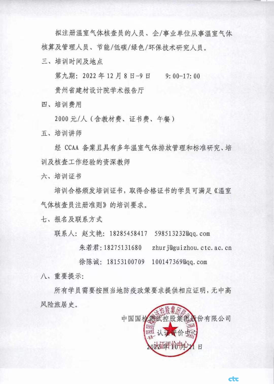 關(guān)于舉辦溫室氣體核查員培訓(xùn)班的通知